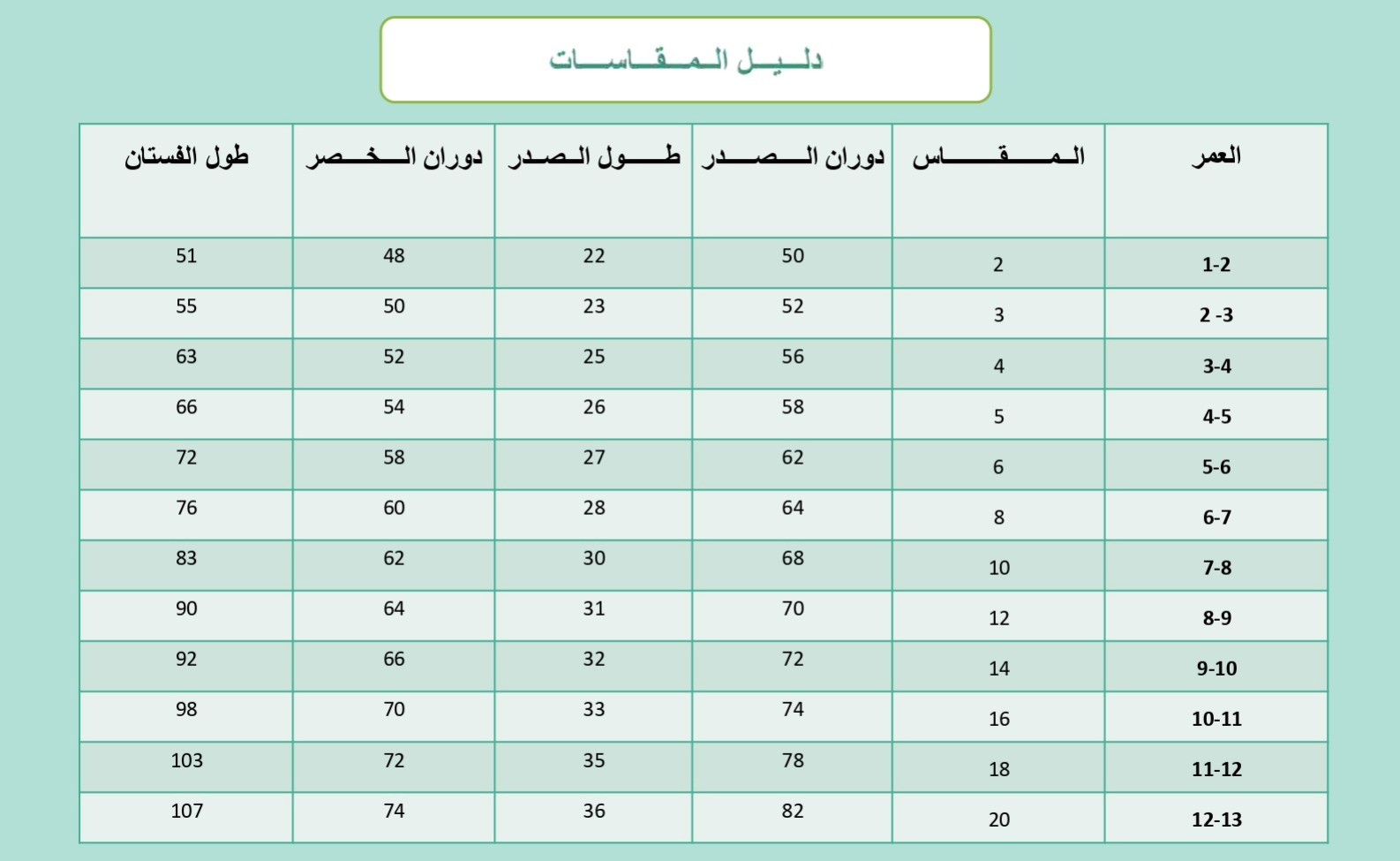 نرجوا الاطلاع على القياسات كما هي في الجدول ومطابقتها على الملكة الصغيرة 💎👸🏻